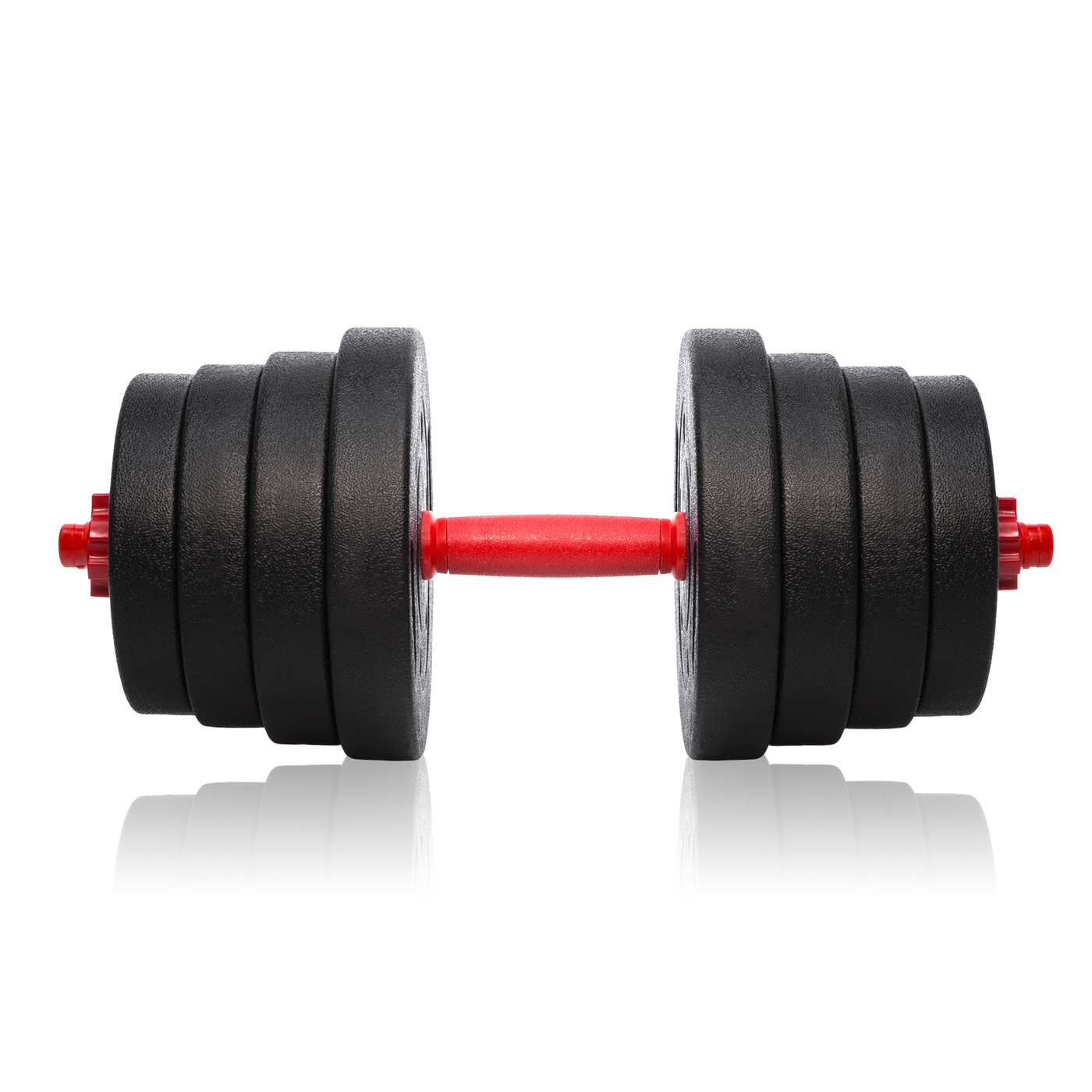 Zestaw składa się z 16 obciążeń kompozytowych, 2 gryfów i 4 nakrętek. Gryf posiada antypoślizgową rączkę, która zapewnia stabilny chwyt i zapobiega wysuwaniu się hantli z dłoni. Hantle sprawdzą się w rękach początkującego i doświadczonego kulturysty. Obciążenie dołączone do zestawu można dowolnie konfigurować.